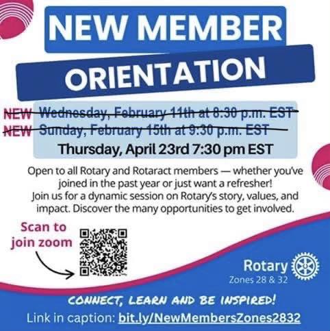 Open to ALL Rotarians whether you are new or want a refresher!! Join us for this orientation hosted by Zones 28 and 32 on 4/23!