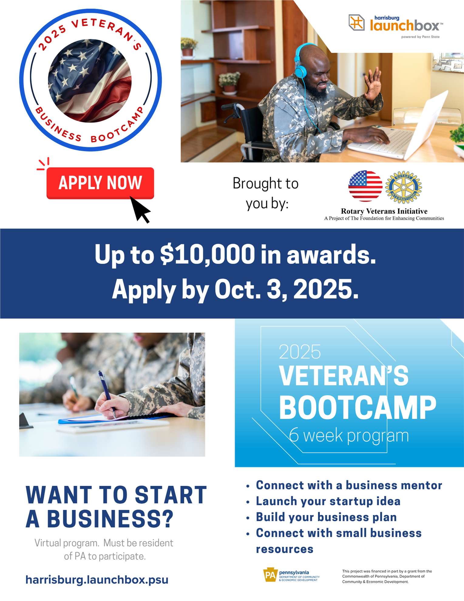 ALL District 7390 Rotarians are invited to attend the Final Pitch Competition Event of our 3rd Veterans Business Bootcamp: